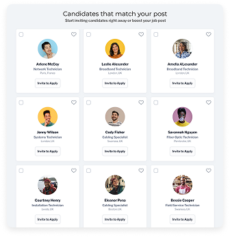 After posting a job, the system will present you with a list of the most suitable candidates whom you can invite to apply to your job freely.