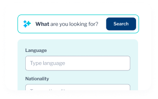 Search by skill, experience, education, availability, language, location, or AI-generated profile tags